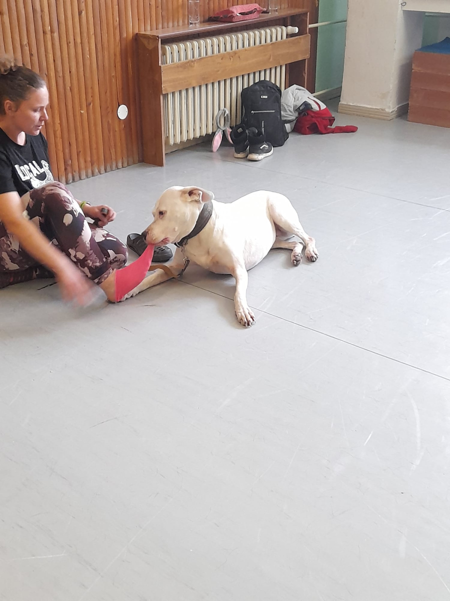 V pondělí 17. 3. jsme přivítali v naší školní družině dva výjimečné pejsky, argentinskou dogu Dominiku a německého ovčáka Šišinku v doprovodu cvičitelky Kateřiny Koczkásové z kynologického svazu ZKO Mořkov.