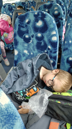 Být tři hodiny vkuse v pohybu, to se jen tak někomu nepodaří! Naši prvňáčci neúnavně zdolávali atrakce v zábavném parku Žirafa v Ostravě v rámci svého prvního školního výletu. Nadšení, rozzářené oči, radost, zábava. Dopoledne strávené na skluzavkách, v bazénkách s míčky, na kolotočích, prolézačkách a trampolíně. Tolik pohybu by uspalo snad každého. V autobuse na zpáteční cestě se zavřely nejedny oči....