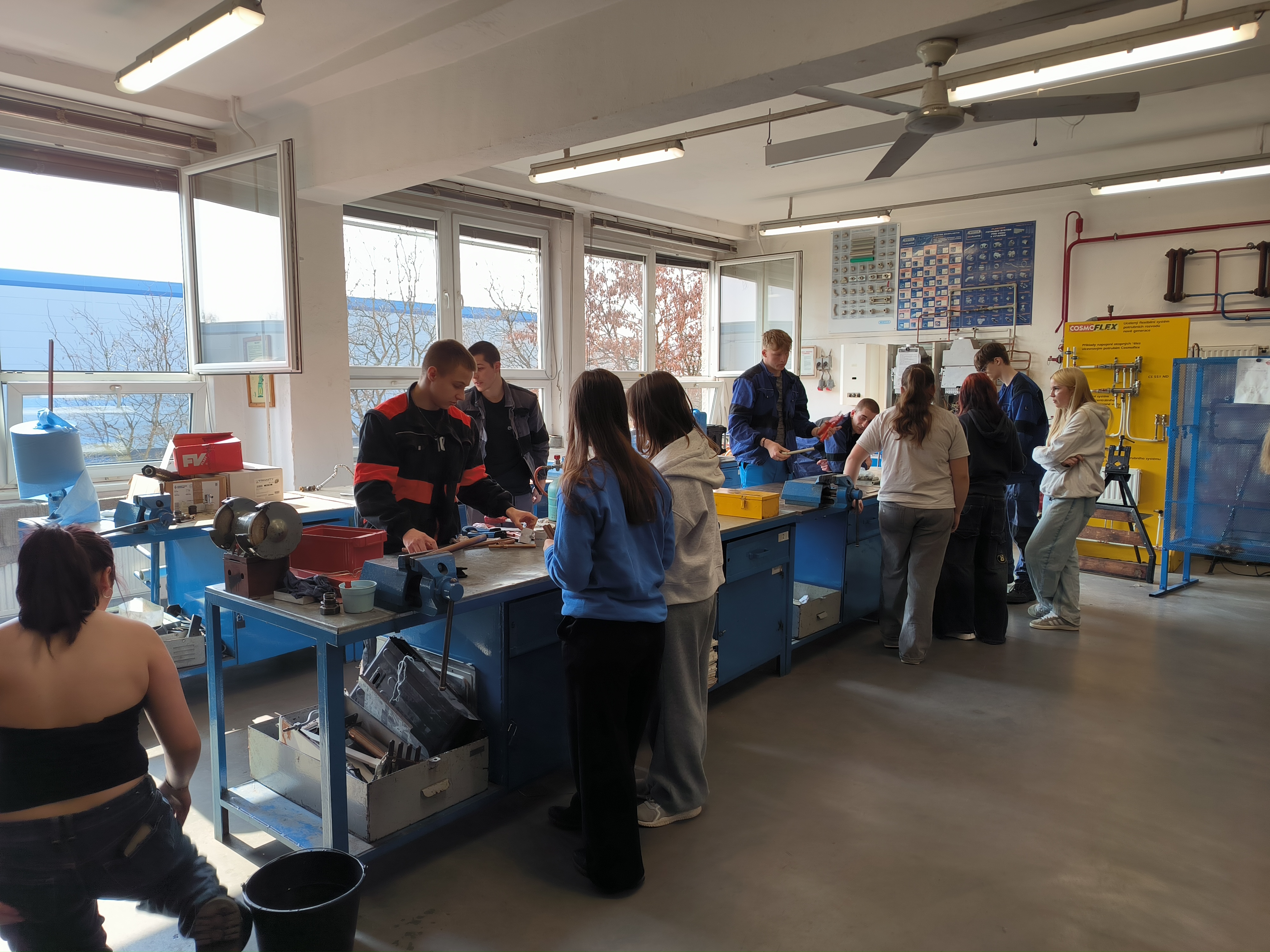 Pozvali nás 18. března 2026 podívat se k nim do technické části školy, aby si žáci rozděleni do skupinek v provozu dílen prakticky vyzkoušeli, jak jsou šikovní. Tamní studenti pomohli dobrou radou i pomocí. Ke studiu jim slouží i velmi moderní technika, kterou jsme také zhlédli.