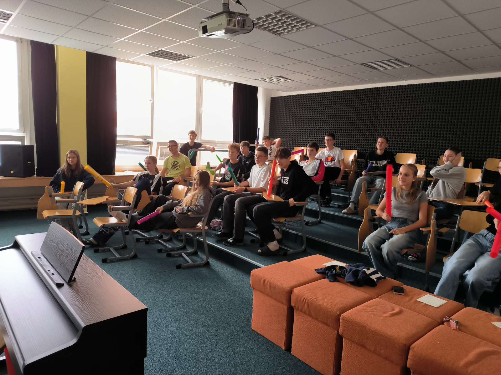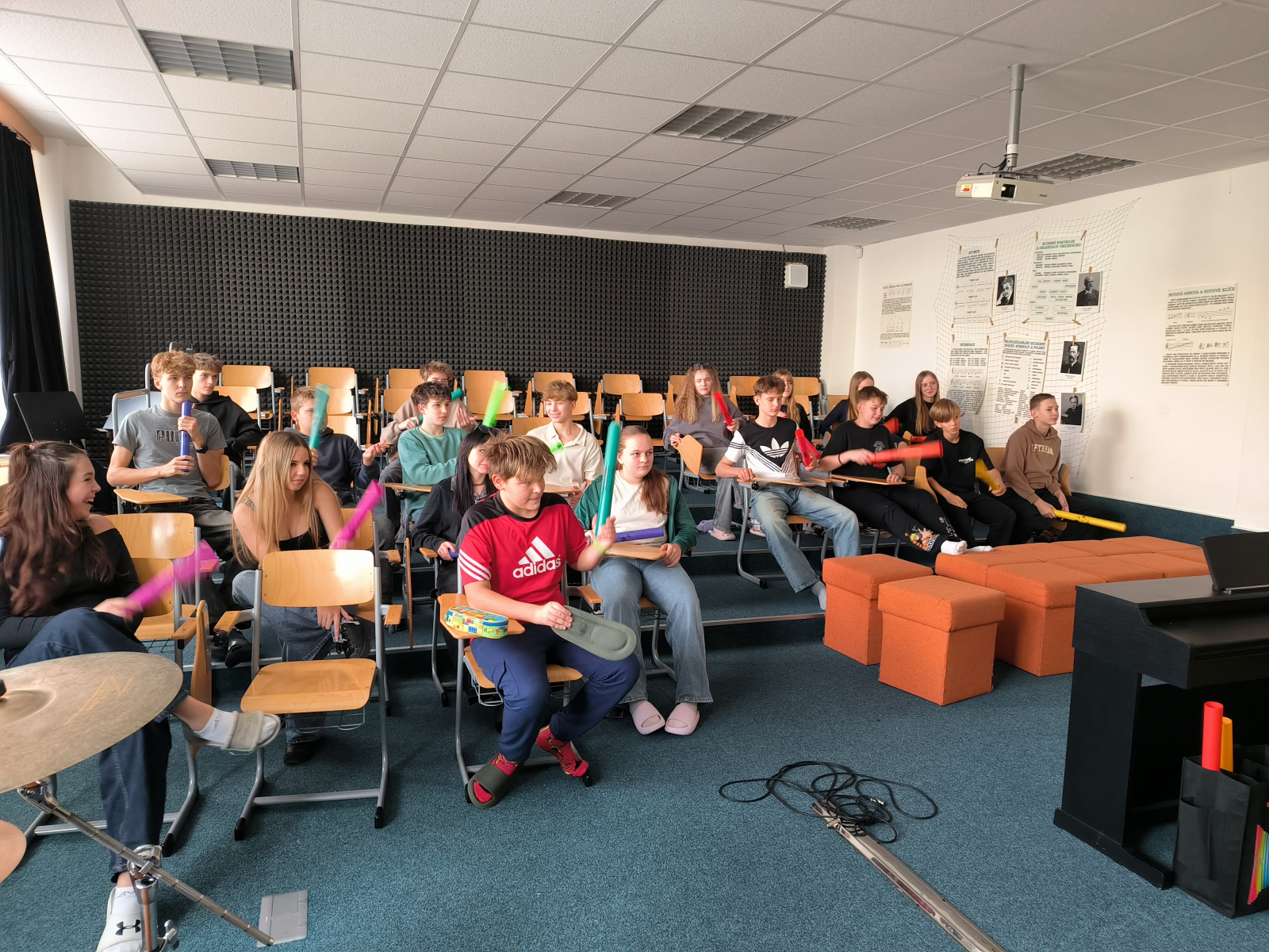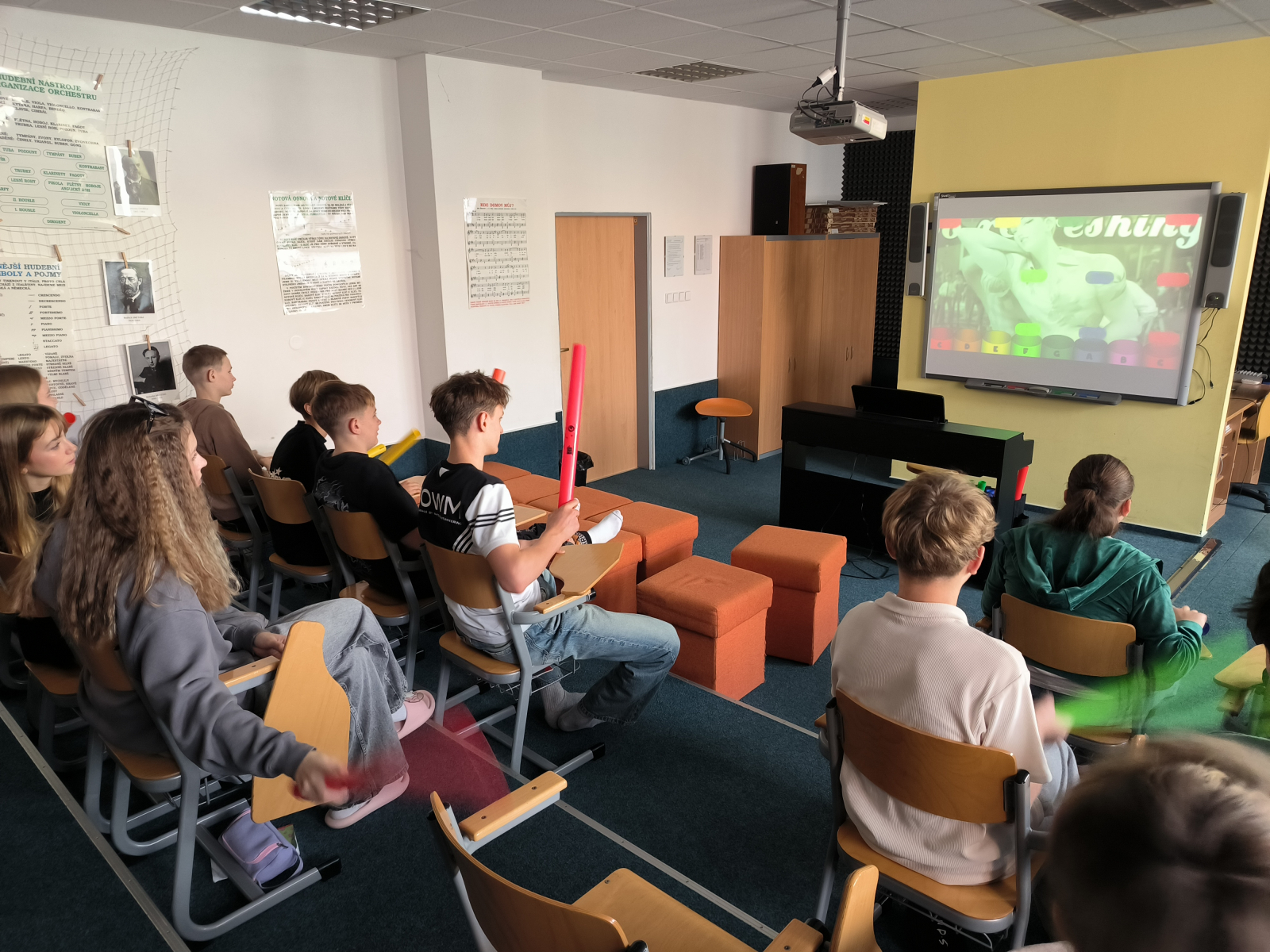 V pondělí 10.11. se hodiny hudební výchovy v 8.třídách nesly v duchu rytmu a barev.