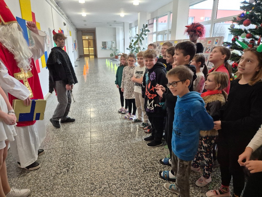 V pátek 5. prosince zavítal do naší školy Mikuláš a spolu s ním i nový program, který pro děti 1. stupně připravili žáci 9. třídy.